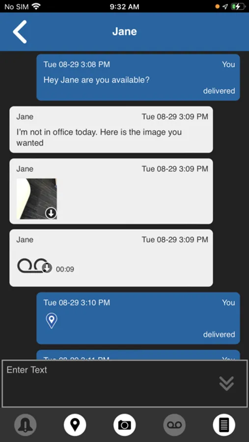 • Easily send messages, multi-media content (ie. Images, videos, recorded audio), or your current location to users within a talkgroup (3)