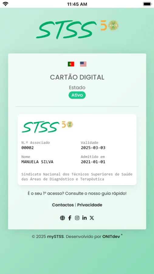 - Cartão Digital: acesso ao cartão digital de associado, com possibilidade de exportação do mesmo.