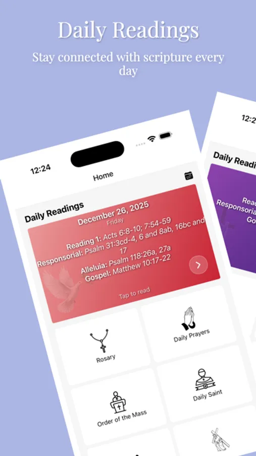 This beautifully designed app helps you grow spiritually every day. Whether you're praying alone or with others, you'll find everything you need to stay rooted in your faith.