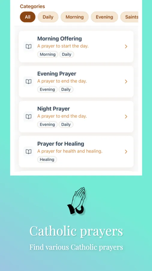 - Catholic Prayers: Access dozens of traditional prayers