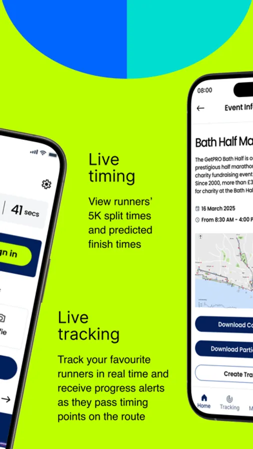 The GetPRO Bath Half app provides real-time participant tracking. We bring the excitement of Event Day to spectators by delivering real-time tracking and results.