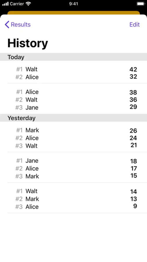 • Full games history, with players and scores details, and export to CSV (requires in-app purchase)