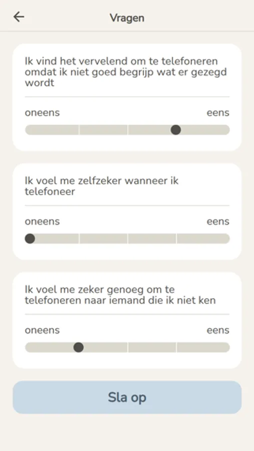 - Gerichte vragen over dagelijkse situaties, emoties en ervaring met de trainingen die leiden naar bijkomende informatie en tips