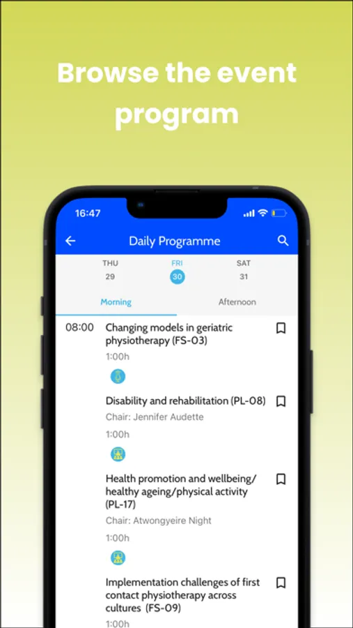 The mobile app for World Physiotherapy Congress 2025, the biennial congress for the global physiotherapy community. Users can find information about the congress including the programme, speakers, sessions, exhibitors – and more! Participants can use the app to connect with each other and with exhibitors, plan their congress experience, and give feedback on sessions.