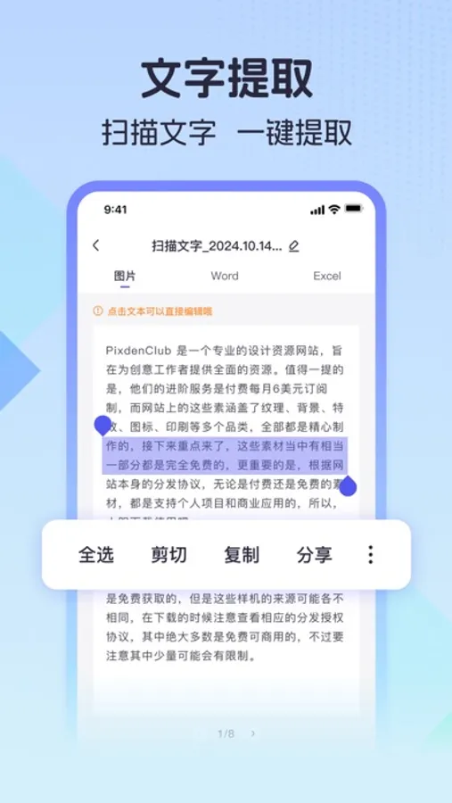 扫描证件:精准识别各类证件,1:1高清还原,随时备用。