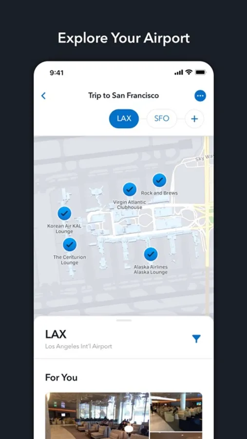 Filter by amenities and find the right lounge for your needs at the right time.