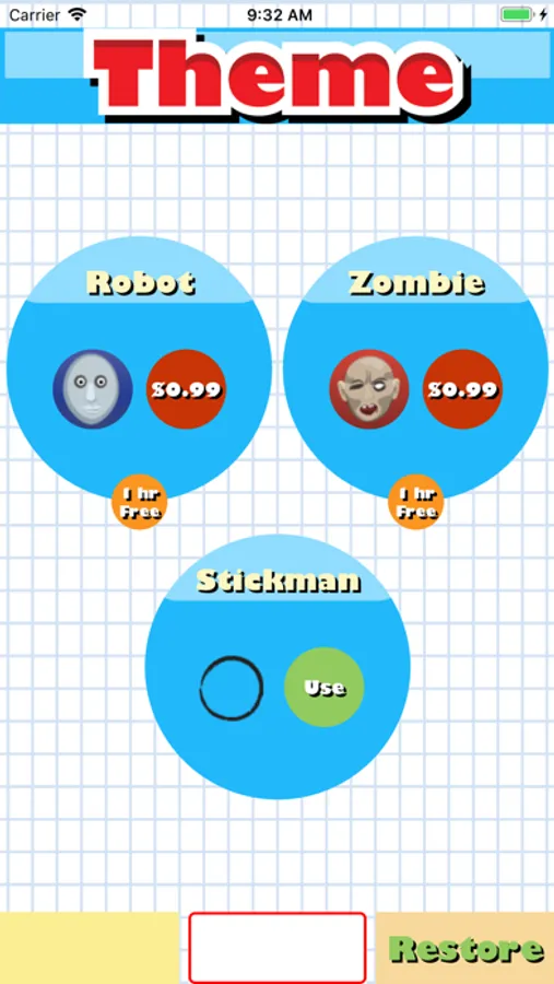 Reward Ads available. Watch a reward ad for 1 hour access to both Robot and Zombie themes.