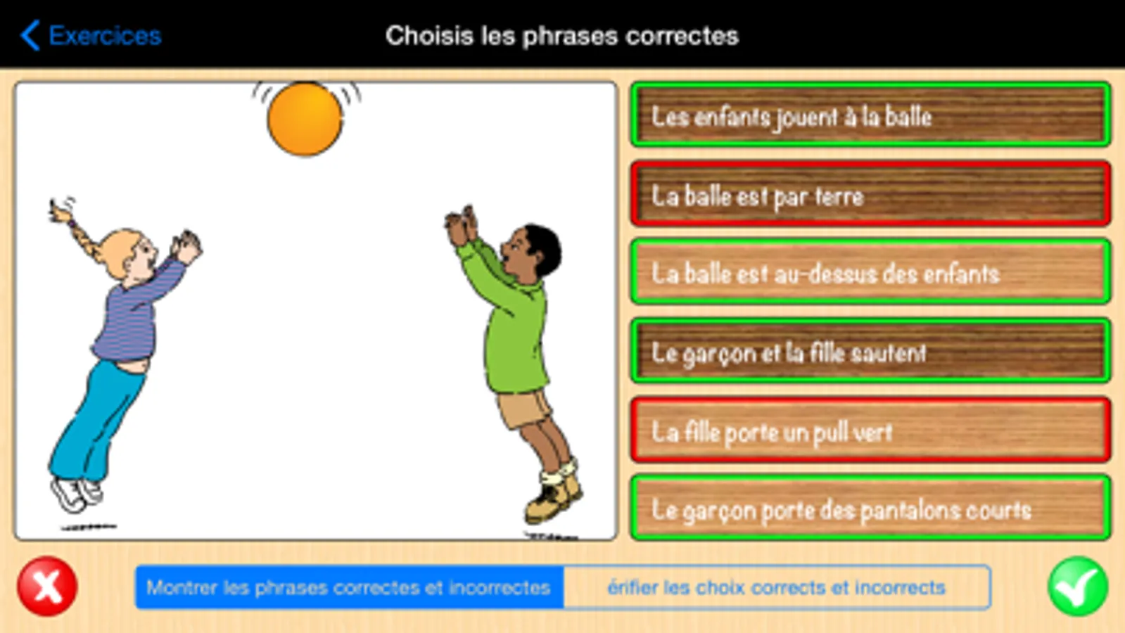 The player chooses the correct sentences (multiple choices are possible). Once completed, it can check if the right choices were made.