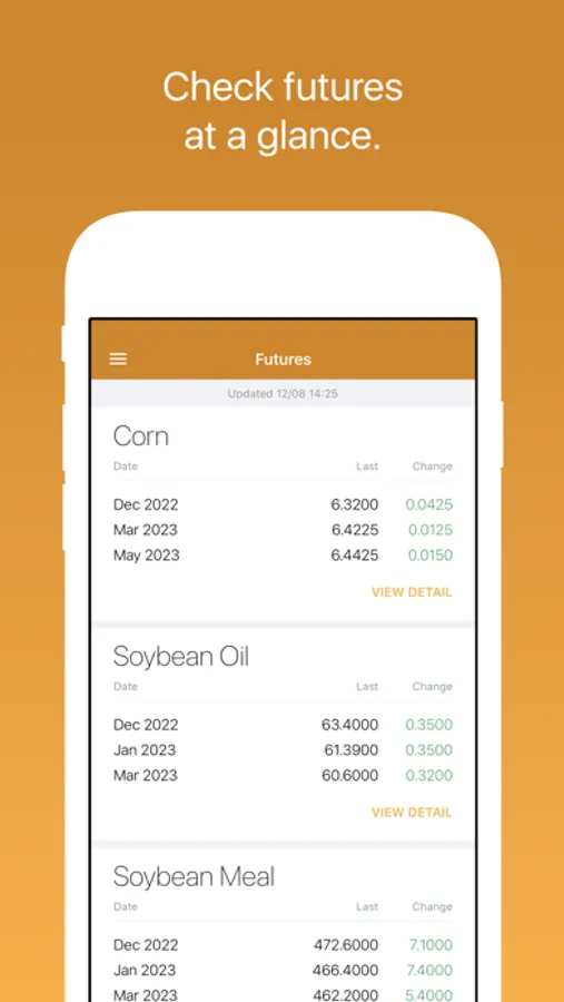 Futures: See Grains, Feed, Livestock and Ethanol futures listed in order of your preference