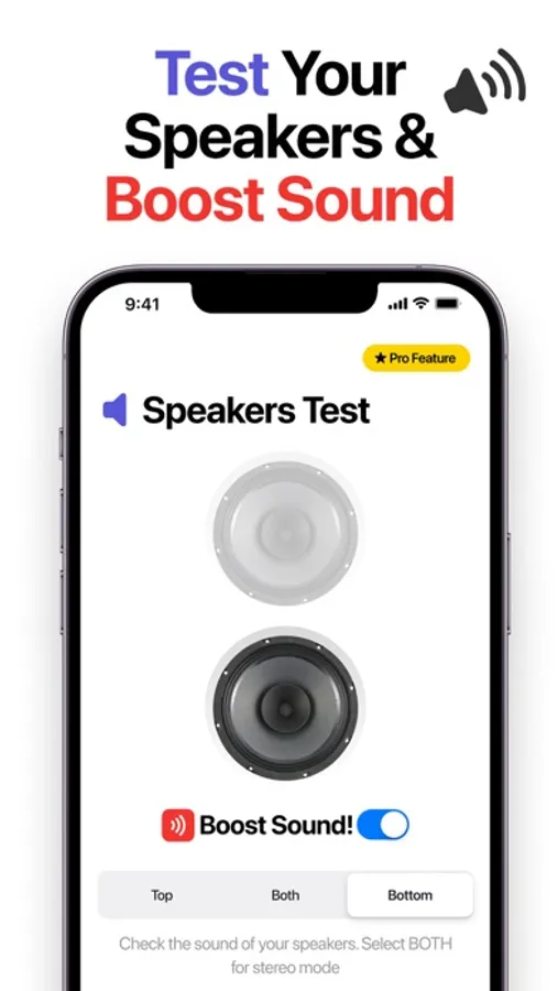 Run stereo speaker tests to check left/right channel output, identify distortion, or assess overall clarity. Use the Volume Boost tool to stimulate deeper speaker output. It's a great way to test how your phone handles different audio ranges and troubleshoot hardware inconsistencies.