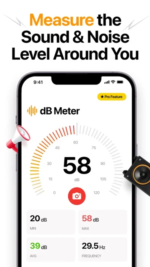 Monitor your environment with precision. The built-in noise meter measures ambient sounds in decibels (dB), helping you track exposure to loud environments at home, work, or outdoors. Useful for checking room acoustics, detecting noise pollution, or managing volume levels to protect your hearing.