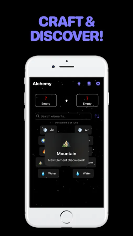Start with the basics and watch your creations evolve! From steam to storms, dragons to diamonds, every tap sparks a new possibility. With no limits to what you can craft, your imagination is the only boundary. How far can your alchemical journey take you?