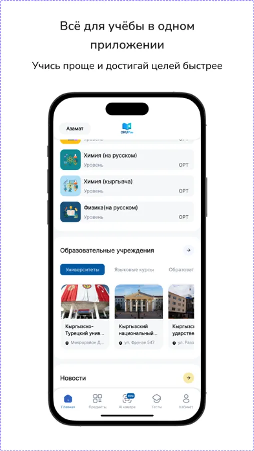 OKUPro — это универсальное приложение для абитуриентов и студентов, которое поможет вам на каждом этапе образовательного пути. Получите всю необходимую информацию о вузах, необходимых документах для подачи и легко подготовьтесь к экзаменам с помощью удобных тестов!