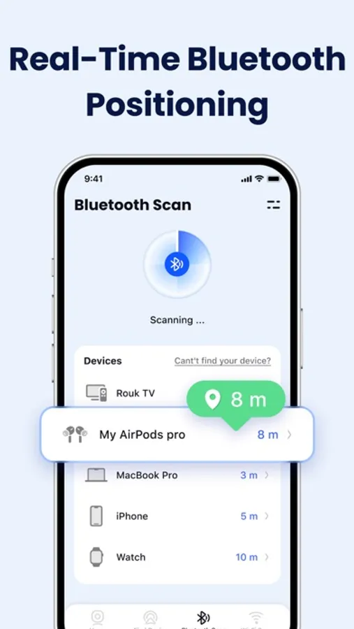 - Bluetooth Scan: Detect nearby Bluetooth devices and track their proximity in real time, helping you pinpoint their location.