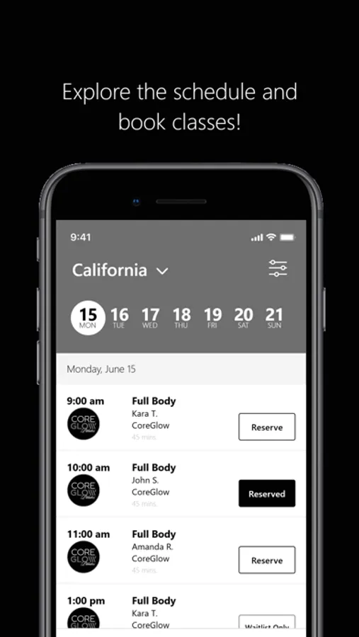 CoreGlow Pilates Screenshots