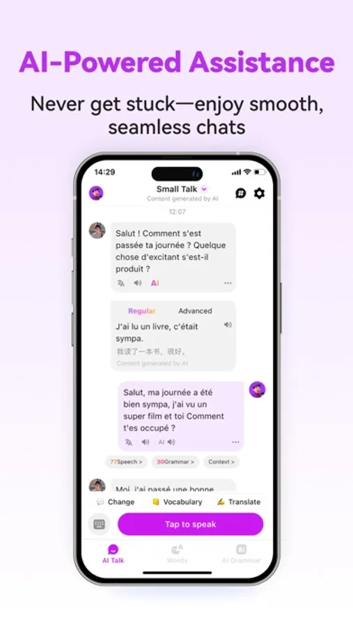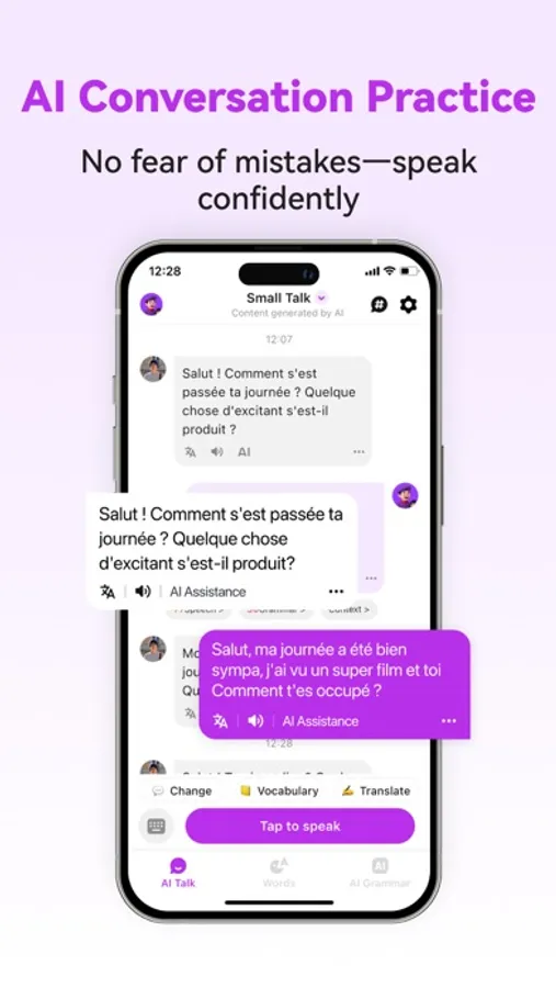 Through personalized AI conversation lessons, fun interactive exercises, and real-life scenario simulations, you can easily master essential French for daily communication, business conversations, and travel.