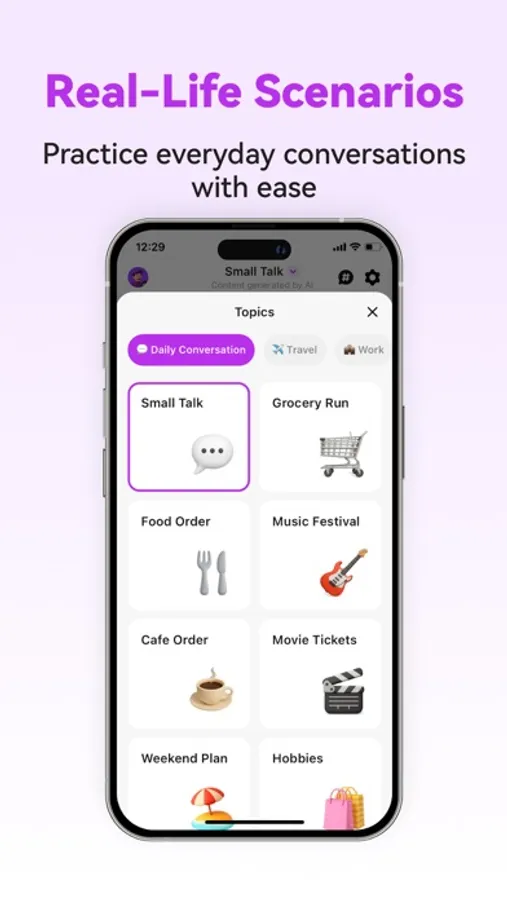 >>Scenario-Based Courses: Cover everyday conversations, travel, work, and exams – explore a rich topic library that meets your goals and interests