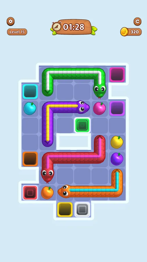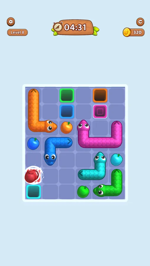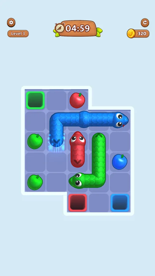 Wriggle your way through clever grid puzzles! Eat matching food, find the correct gate, and guide each snake out safely. The more they eat, the longer they grow — and the harder it gets to escape! Simple to play, tough to master, and super satisfying!