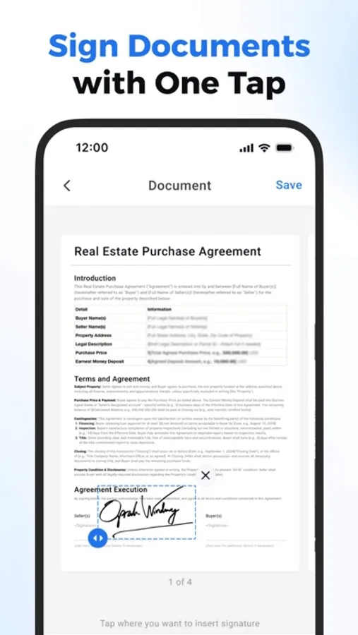 Effortlessly sign your documents. Upload your file (supports standard formats like PDF). Then, easily position your pre-saved, AI-generated handwritten signature precisely where needed on the document. This ensures every agreement or proposal maintains a high standard of professional presentation with minimal effort.