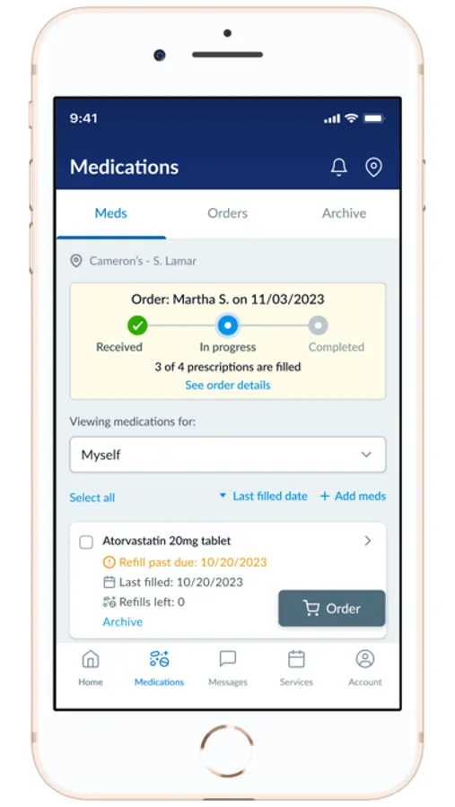 Manage medication refills: Submit refill requests, receive pickup/refill reminders, and view your order history with just a few clicks.