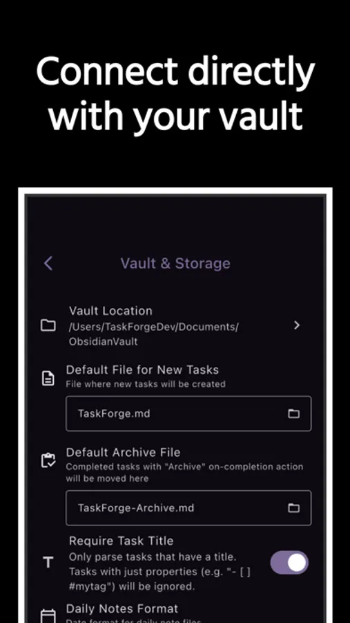 • Deep Obsidian Integration: Connect directly to your vault and manage tasks within your notes with real-time sync