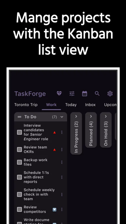 If you use Obsidian, Taskforge is perfect for task management. It is relatively bug-free and easy to configure. This has become my mainstay for task management now. Request to developer: Allow user to select font and make the app more Mac and iOS-like in their respective deployment. Add a lock-screen widget for creating new tasks.