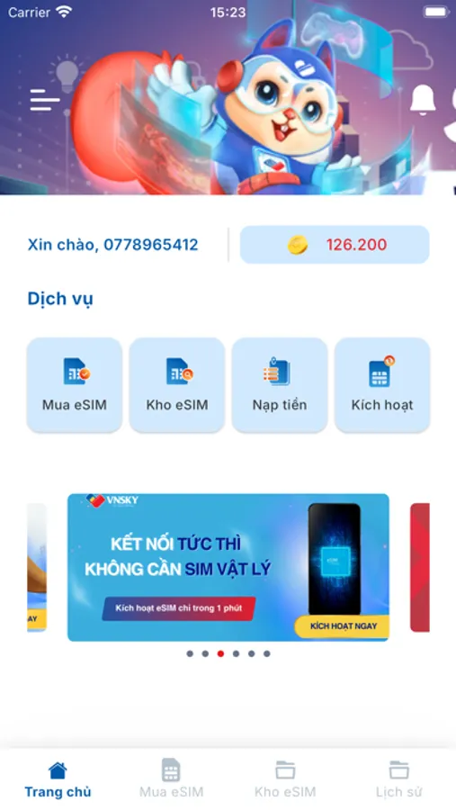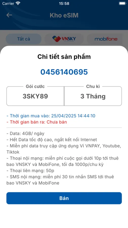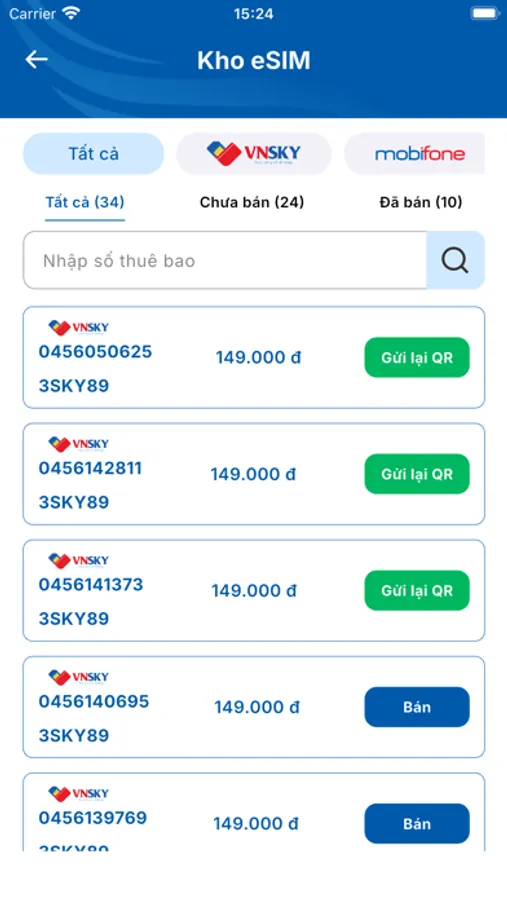 - Hỗ trợ nhiều nhà mạng: Người dùng có thể nhập về kho cá nhân eSIM từ các nhà mạng lớn tại Việt Nam như VNSKY, Mobifone...