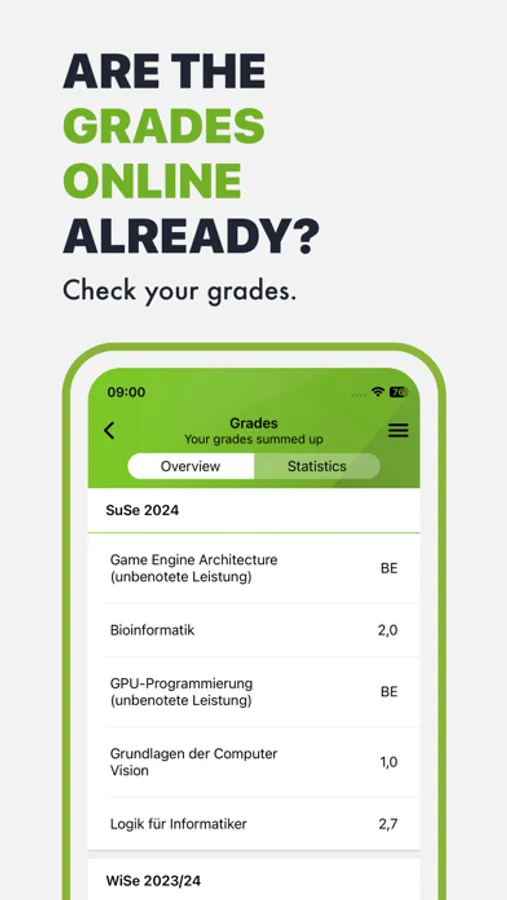 The app is your team partner on campus, which is impressive and integrates perfectly into your daily study routine. In no time at all, you have all the important information about your studies with you, wherever you are. You'll be surprised how easy it is.