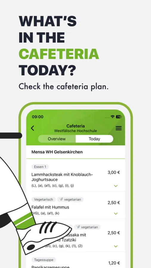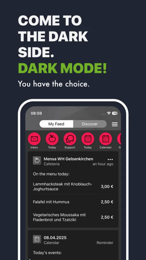 The app offers you everything you need to start every day well prepared, no matter if you have just started your studies or are already in your master's program.