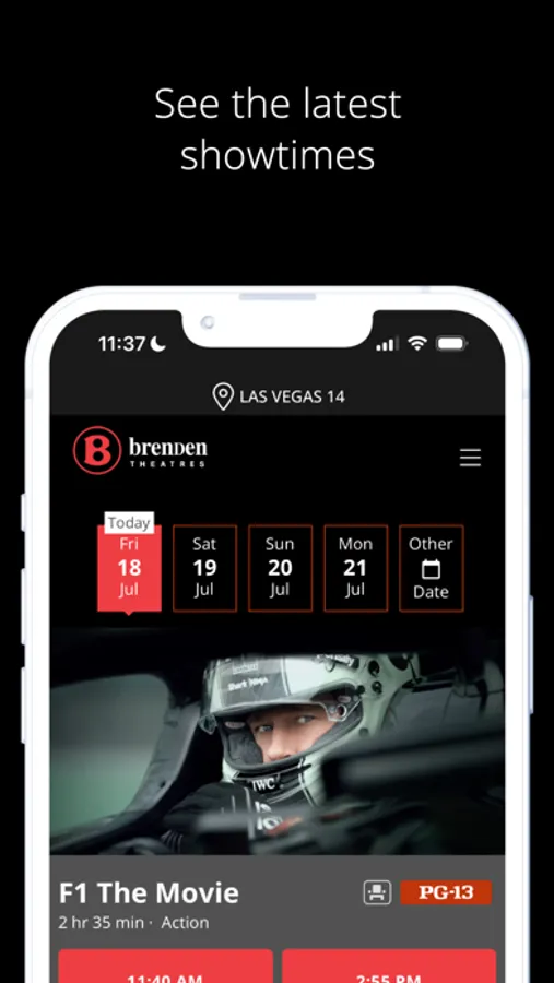 The app provides instant access to available showtimes, seats, pricing, and theatre information.