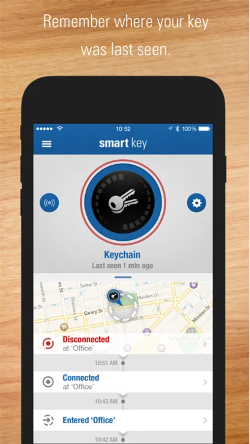 This app requires a small hardware accessory to connect your keychain to your iPhone with low energy Bluetooth Smart technology.