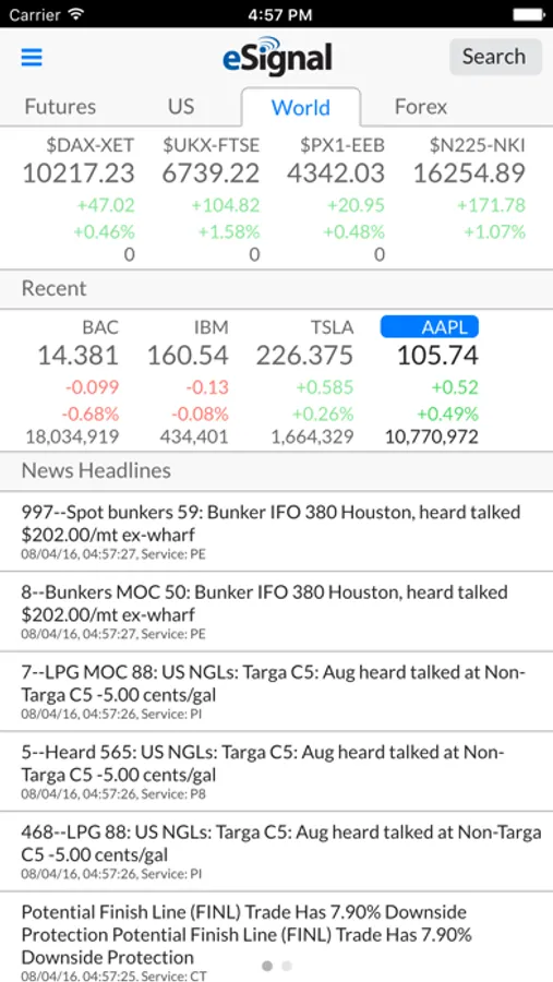 News – Streaming real-time news from respected sources such as Dow Jones.