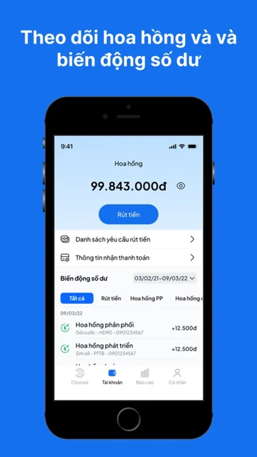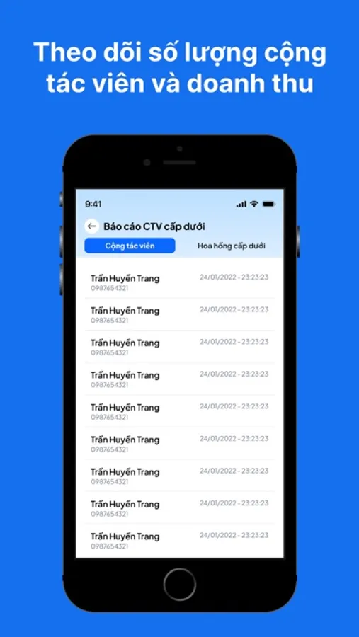 - Theo dõi đơn hàng, doanh thu, lịch sử hoa hồng chi tiết, minh bạch.