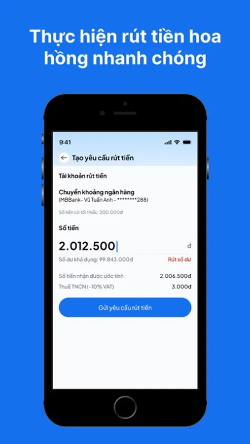 - Rút tiền hoa hồng nhanh chóng, an toàn.