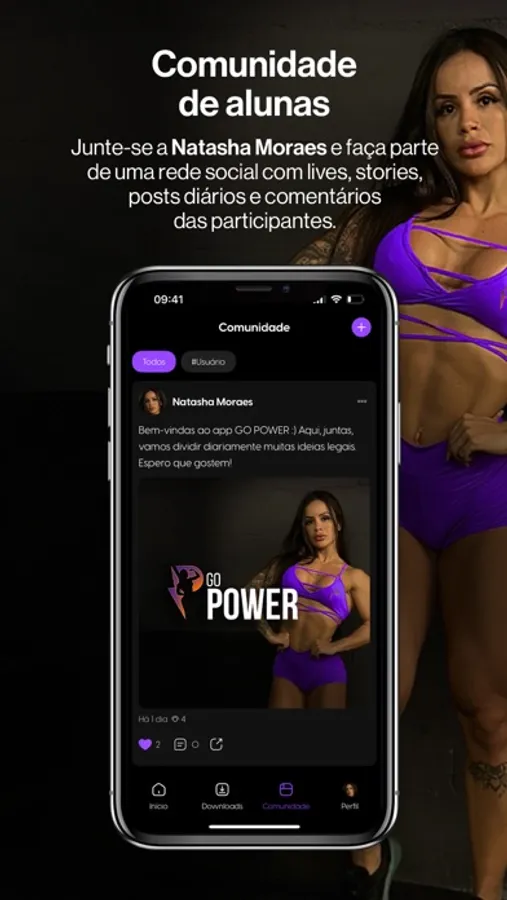 O que é a Power App? É um aplicativo de treino onde você terá praticamente uma personal na palma da sua mão — mas não qualquer personal. Será a Natasha Moraes, hoje uma das profissionais de educação física mais requisitadas do Brasil.