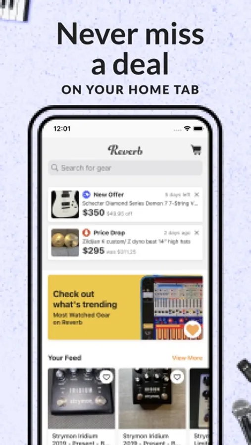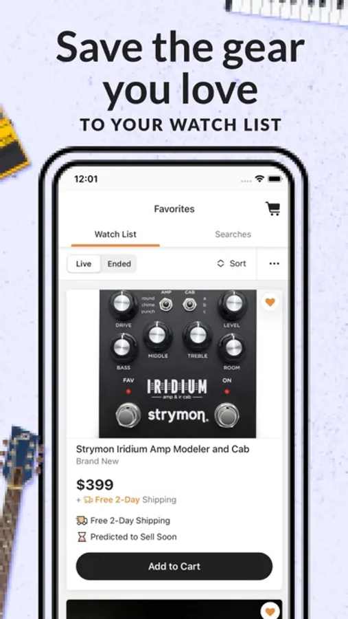 • Save searches (like "Fender electric guitars” or "Korg synths" filtered by Condition, Year, Price and more) to get notified when specific gear you want becomes available.