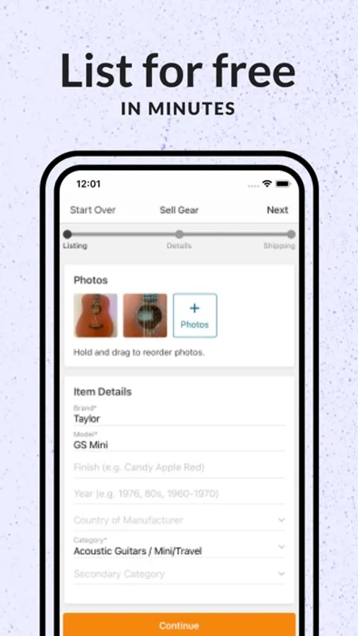 • List gear for free. Create a listing in minutes: simply take photos, write a description, and set your price.