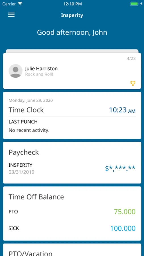 Insperity Mobile is now in sync with your active lifestyle. Quick, easy access to your 401k, paycheck information, FSA, UHC benefits card and more.