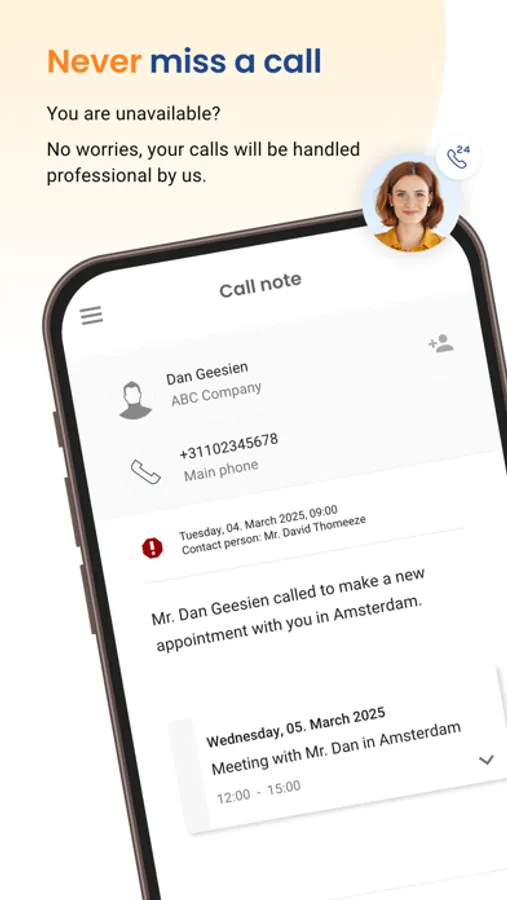 - Receive call notes immediately on your phone and organise them in the Call History.