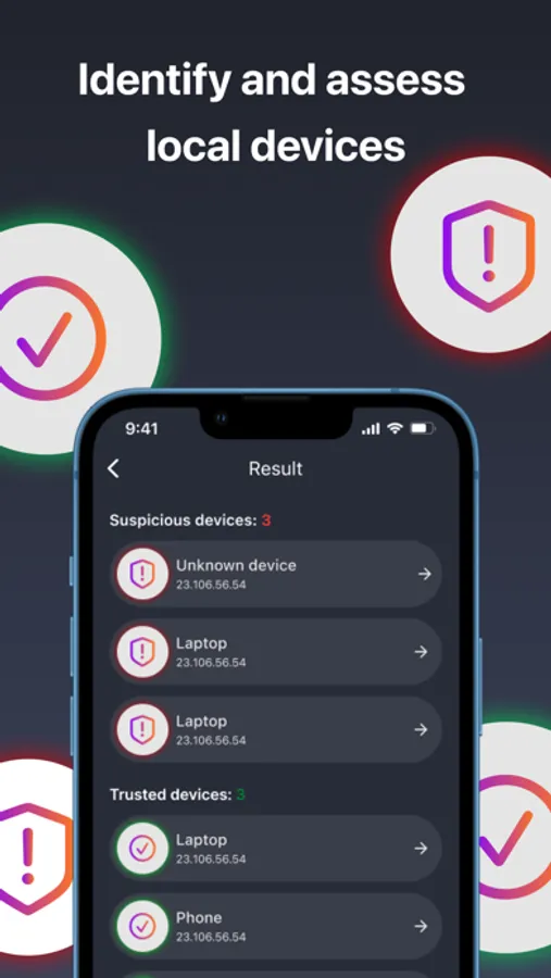 Quickly scan and detect nearby devices, including those connected to Wi-Fi, supervise their activity and strengthen your security for better protection