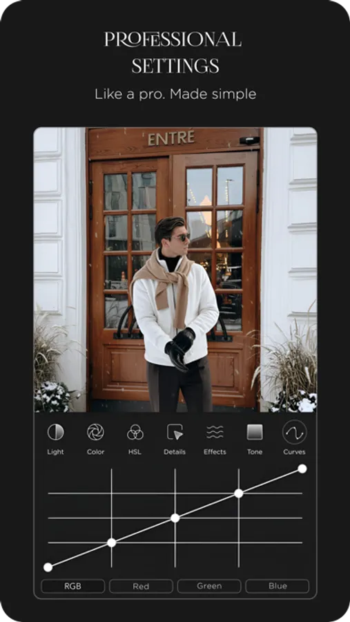 - PRO Color Grading — a complete set of adjustments, including curves, HSL, and precise color control.
