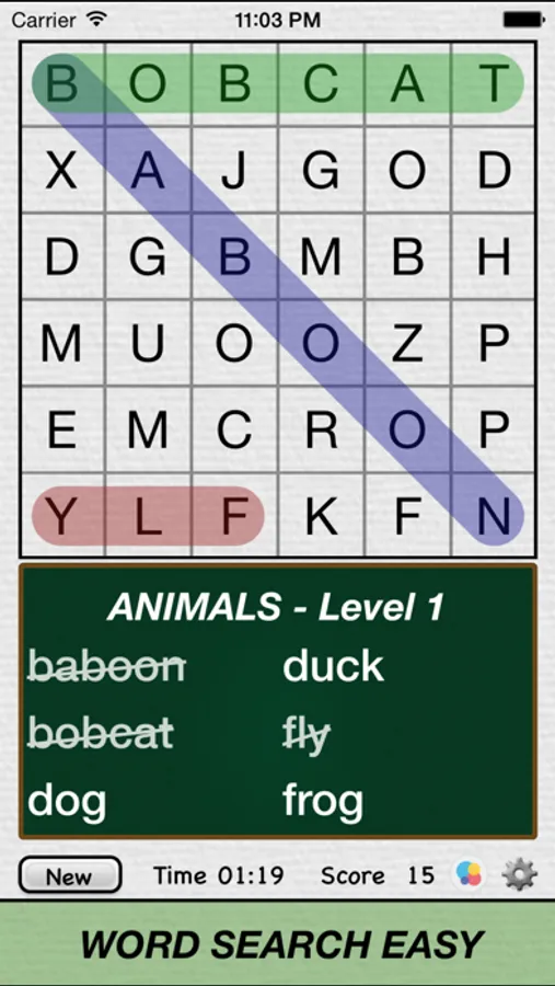 - each word find give points equivalent to its length (the word 'ultimate' for instance, will give you 8 points)