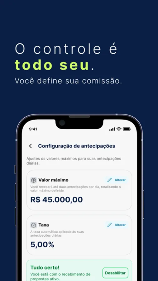 Descubra uma nova forma de ser comissionado com o Antecipar, o app que conecta você a lojistas de todo o Brasil que desejam antecipar seus recebíveis. Aqui, você tem o controle da sua comissão, definindo suas taxas e acompanha tudo em tempo real — com total transparência e segurança.