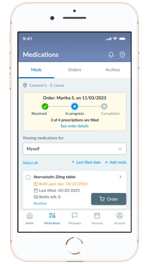 Manage medication refills: Submit refill requests, receive pickup/refill reminders, and view your order history with just a few clicks.