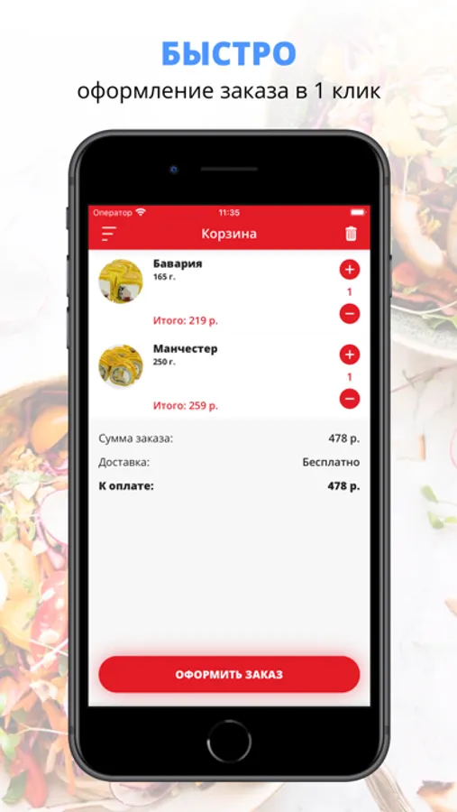 Скачивайте наше приложение, оформляйте заказ и наслаждайтесь любимой едой, где бы Вы ни были! Приятного аппетита!
