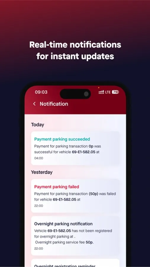 Manage your profile, transaction history, and parking requests directly in the app.