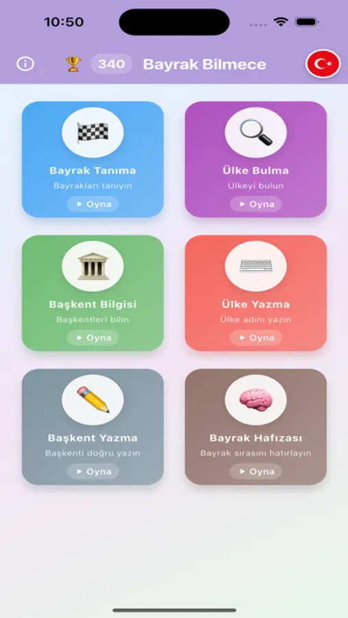 Includes 6 exciting game modes: Classic Flag Riddle, Country Riddle Game, Capital Cities, Flag Memory, Country Writing Game, and Flag Order Puzzle... Our game is available in 5 languages (Turkish, English, German, Russian, Arabic) and is accessible to players worldwide.