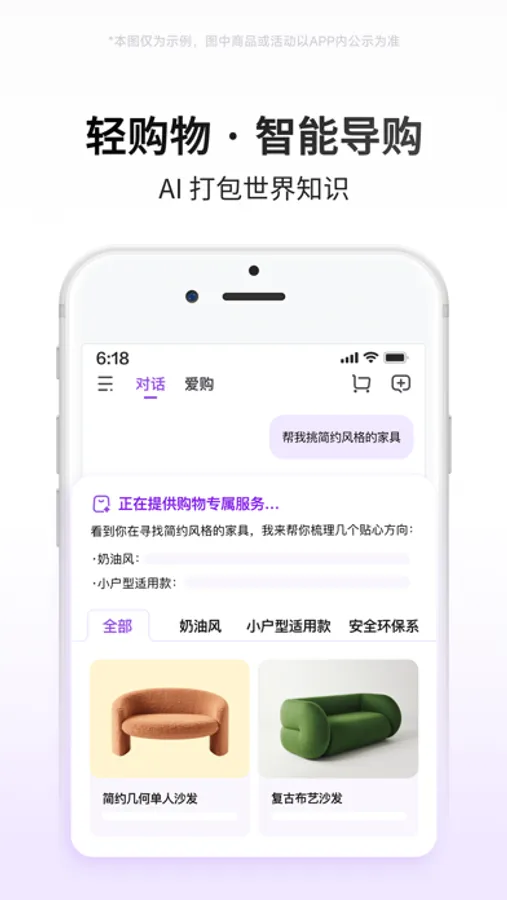 告别关键词搜索,只说简单的“我想要”,就可召唤你的私人买手,掌握世界知识的AI替你思考、帮你匹配,轻松找到你想要的。