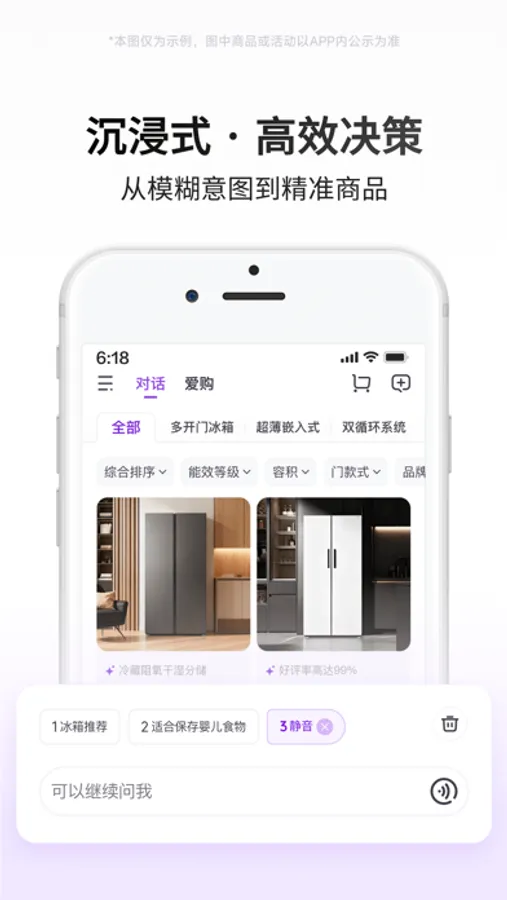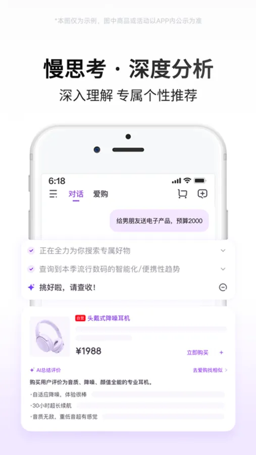 不知道怎么挑?打开爱购频道,原创“线上逛街”模式,边问边逛边筛选,精准解码你的需求,帮你开启「个性化智能购物街区」,总结每一件商品的参数特性、评价口碑,不再选择焦虑,省心又高效。