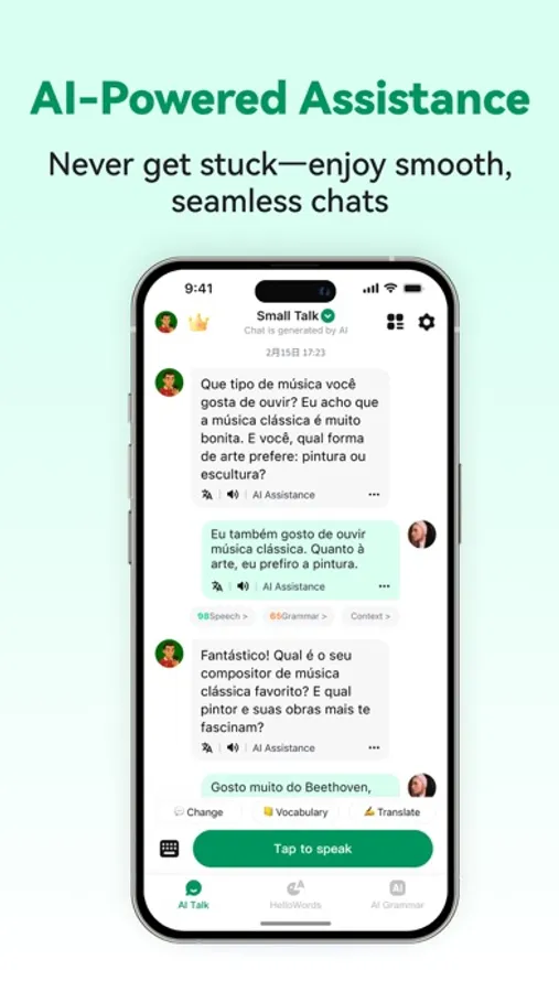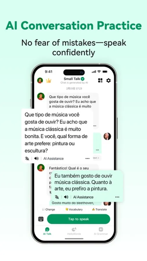 With personalized AI conversation courses, fun interactive exercises, real-world scenario simulations, gamified vocabulary practice, and AI-powered grammar correction, you can easily master essential Portuguese for daily conversation, business, and travel.